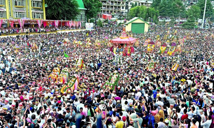 भगवान रघुनाथ जी की अलौकिक रथयात्रा और अनूठे देव-मानस मिलन के साथ गुरुवार को देश-दुनिया के सबसे बड़े देव समागम ‘अंतरराष्ट्रीय कुल्लू दशहरा’ उत्सव का भव्य आगाज हुआ। भगवान राघव की विस्मृत कर देने वाली इस भव्य रथयात्रा में देवी हिडिंबा, बिजली महादेव, ज्वाणी महादेव, देवता नाग धूमल समेत ठारा करड़ू देवताओं ने भाग लेते हुए धरा पर हुए इस सबसे बड़े देव समागम में चार चांद लगा दिए। ठीक साढ़े चार बजे शुरू हुई भगवान रघुनाथ की इस अद्भुत, अलौकिक, अद्वितीय रथयात्रा में घाटी के काफी संख्या में देवी-देवताओं ने हिस्सा लेकर रथयात्रा की शोभा को बढ़ा दिया। हिमाचल प्रदेश के हजारों श्रद्धालु इस पल के साक्षी बने। हजारों की संख्या में लोगों ने अधिष्ठाता देव भगवान रघुनाथ के रथ को खींचकर पुण्य भी कमाया। इतना ही नहीं, विदेशी सैलानी भी इस अद्भुत व अलौकिक नजारे को अपने कैमरे में कैद करने के लिए उत्साहित नजर आए। ढोल-नगाड़ों की थाप के साथ ढालपुर गूंज उठा। भगवान रघुनाथ के साथ देवी-देवताओं की शक्तियां वाद्य यंत्रों की धुनों के साथ चारों तरफ फैलीं, तो हजारों की संख्या में आए श्रद्धालुओं ने अपने आप में यह महसूस किया कि सचमुच उन्हें प्रगट रूप में आशीर्वाद प्राप्त हुआ है।