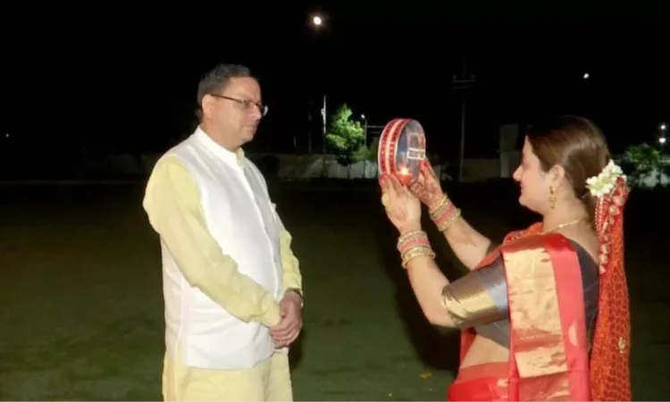 सीएम पुष्कर सिंह धामी ने धर्मपत्नी संग मनाया करवा चौथ।